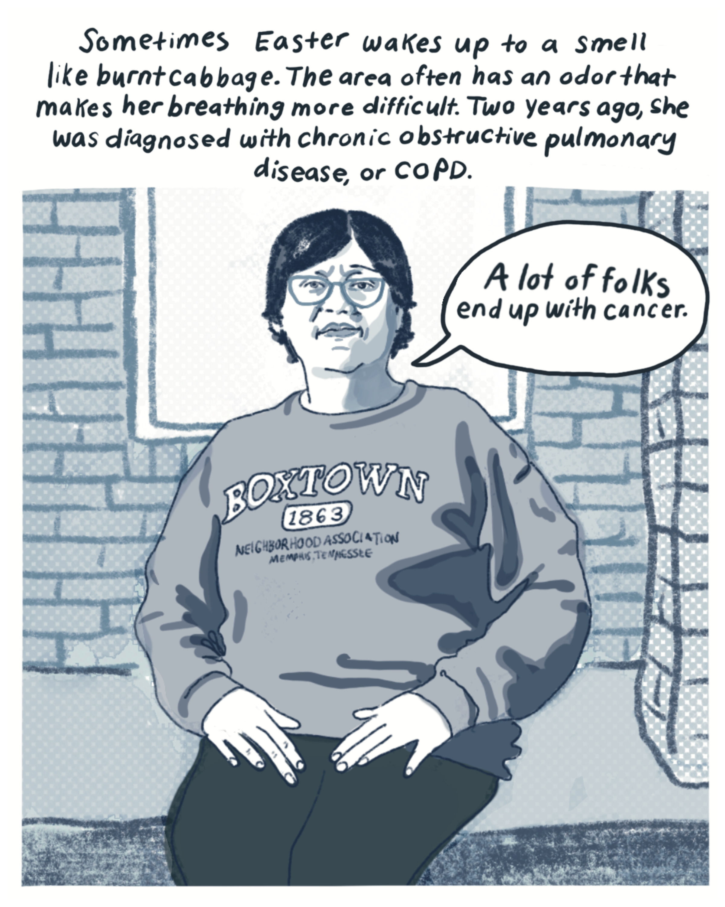 “The Wrong Kind of Air.” Words by Austyn Gaffney, Art by Martha Park. Published by MLK50: Justice Through Journalism with support from the Economic Hardship Reporting Project and Trusting News.